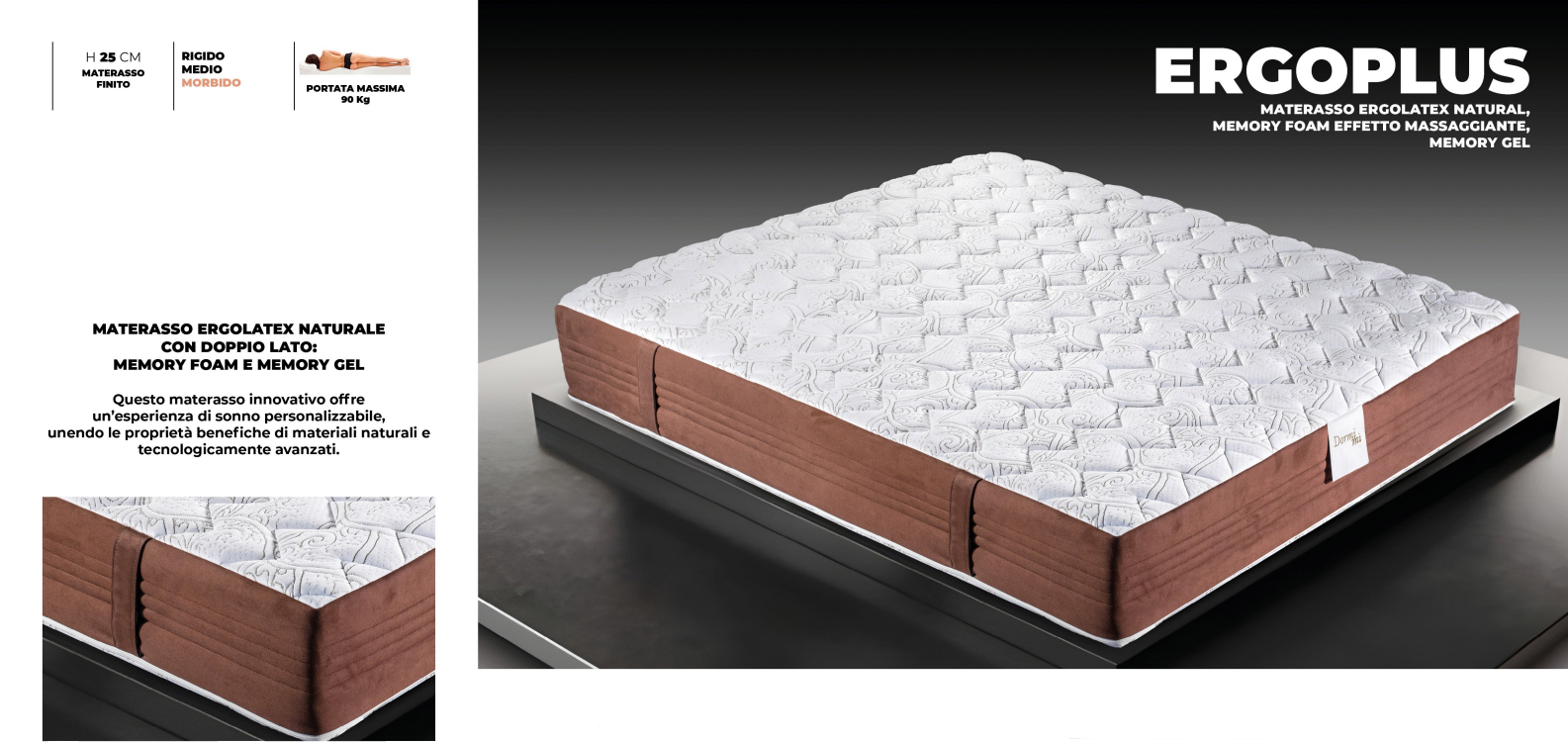 Ergoplus è un Materasso Sfoderabile in Eroglatex Naturale con un doppio abbraccio di memory per offrire un comfort ottimale sia nella stagione estiva che in quella invernale. Questo materasso innovativo unisce le proprietà benefiche dell'eroglatex naturale con il comfort avvolgente del memory foam e la freschezza del memory gel, offrendo un'esperienza di sonno su misura per le tue esigenze. Caratteristiche Principali: - Eroglatex Naturale: Un materiale traspirante e anallergico, derivato dalla gomma naturale dell'albero della gomma. Offre un sostegno elastico e duraturo, ideale per chi cerca un materasso naturale e salutare. - Doppio abbraccio di memory: - Lato Memory Gel: Fresco e accogliente, il memory gel si adatta alla forma del tuo corpo, dissipando il calore e garantendo un riposo fresco anche nelle notti più calde. - Lato Memory Foam: Avvolgente e confortevole, il memory foam offre un sostegno personalizzato, alleviando tensioni e dolori muscolari. - Sfoderabile e Lavabile: Il rivestimento esterno è completamente sfoderabile e lavabile, facilitando la pulizia e l'igiene del materasso. - Traspirante: La struttura interna del materasso favorisce la circolazione dell'aria, mantenendo il materasso fresco e asciutto. - Anallergico: Ideale per chi soffre di allergie, grazie ai materiali naturali e traspiranti utilizzati. Benefici: - Comfort personalizzato: Scegli il lato che preferisci a seconda delle tue esigenze e delle stagioni. - Migliora la qualità del sonno: Un riposo ristoratore grazie al perfetto equilibrio tra sostegno e comfort. - Allevia tensioni muscolari: Il memory foam e il memory gel si adattano alla forma del corpo, alleviando dolori e tensioni. - Igiene e pulizia: Il rivestimento sfoderabile facilita la manutenzione del materasso. Ideale per: - Chi cerca un materasso naturale e salutare. - Chi desidera un comfort personalizzato e versatile. - Chi soffre di allergie o ha problemi di sudorazione notturna. - Chi desidera un prodotto di alta qualità e dalla lunga durata.